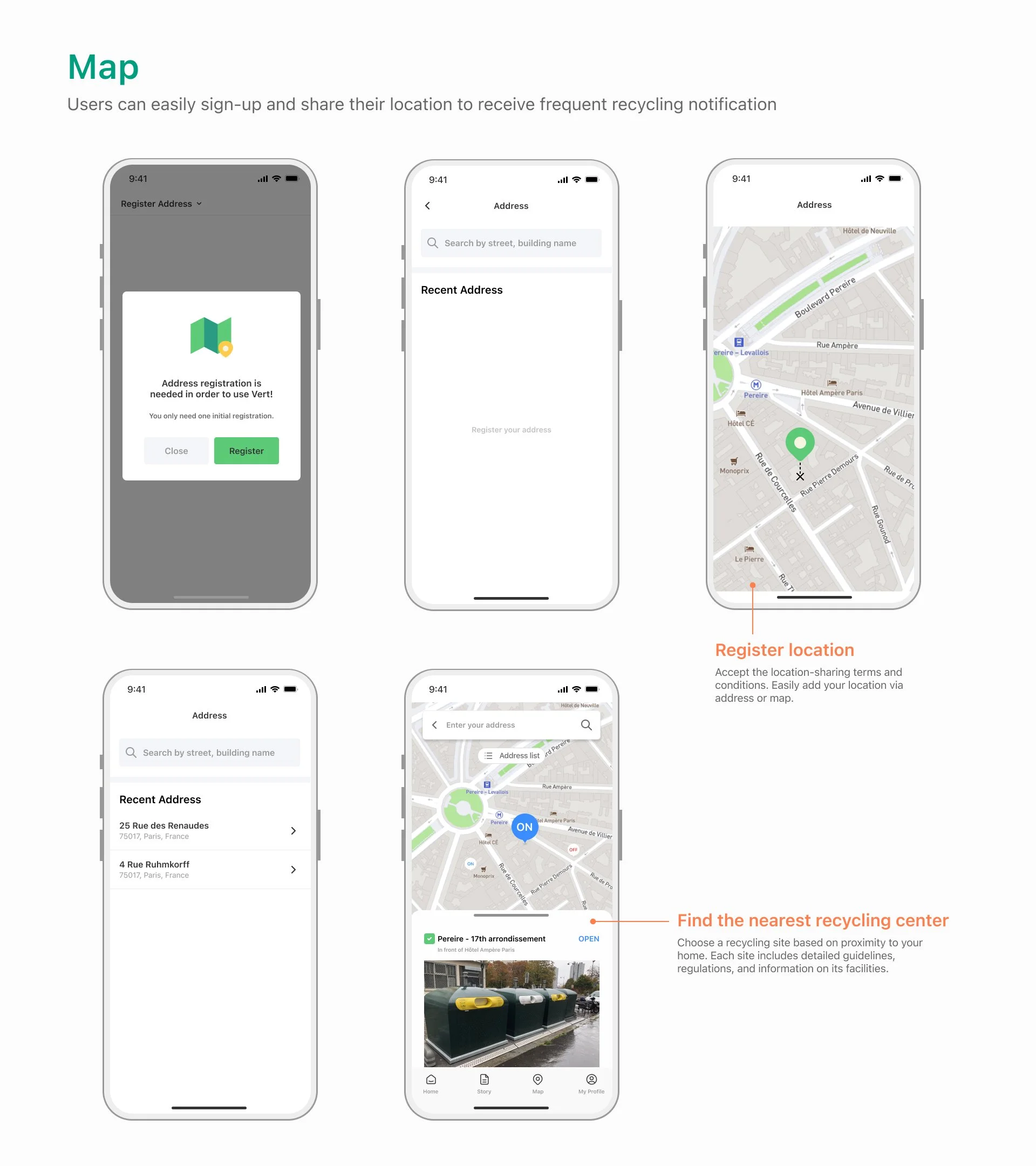 A recycling app, that gives user’s guidance for sustainable living in Paris. Vert offers a user-friendly experience, guiding users through the process of recycling in Paris with clear, step-by-step instructions. Raising awareness of the importance of recycling and creating a more regenerative and sustainable city. We believe that by making recycling accessible and straightforward, we can all play our part in preserving a greener, more eco-friendly future for Paris.